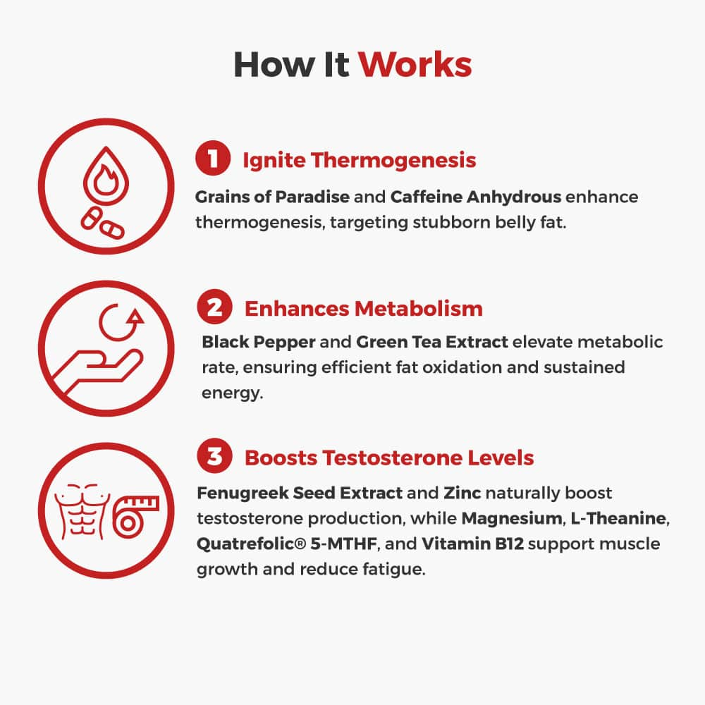 Answer 1: This supplement is specifically formulated to address the hormonal changes and challenges men experience as they age. It combines potent thermogenic and testosterone-boosting ingredients that work together to accelerate fat breakdown and stimulate testosterone production, helping men over 40 reclaim energy, vitality, and a leaner physique.
